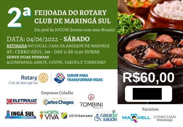 2ª Feijoada do Rotary Clube de Maringá Sul em prol da JOCUM