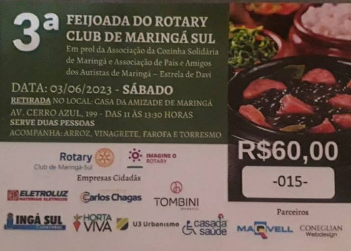 3a. FEIJOADA DO ROTARY CLUB DE MARINGÁ-SUL - em prol da Assoc. da Cozinha Solidária e Assoc. de Pais e Amigos dos Autistas Estrela de Davi